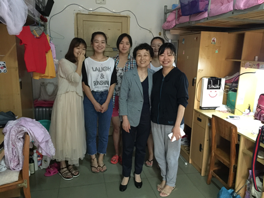 据悉,16栋417寝室曾获文明寝室称号,其中周晗同学为1402班班长,张姝娴同学为14级唯一一位预备党员。访谈过程中,系主任徐秋梅教授从学生学习、生活、工作等方面与学生进行交流,并听取了学生的建议。