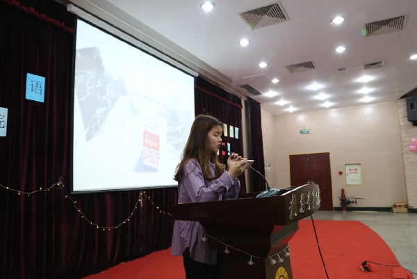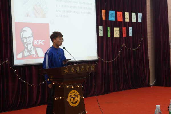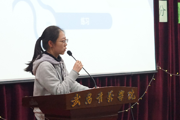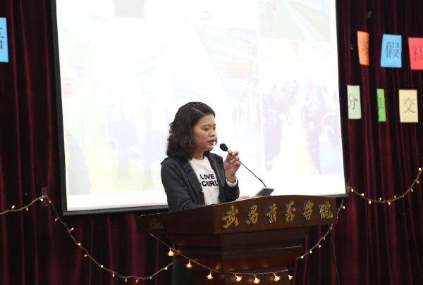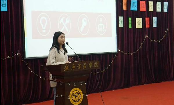2016—2018级8名学生代表通过PPT展示了其寒假社会实践经历及感悟。在英语培训机构工作的董临谈到,无论做什么工作必须投入十分的热情和耐心;在餐厅做服务员的汪瑞雪和何棋都道出生活以及挣钱的不易,表示工作需要有吃苦耐劳的精神;完成教师资格证考试的童璐从笔试和面试两方面为同学们提供了一些建议;创业创新的叶文杰表示创业亦艰难不易,做何事都需要有系统的规划;远赴日韩旅游交流的蒋晨晨发出感慨:中国人要注重传统文化的传承。
