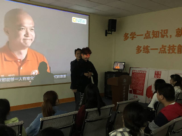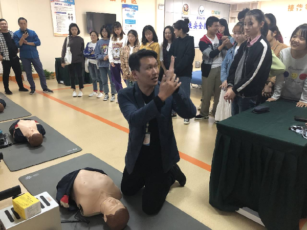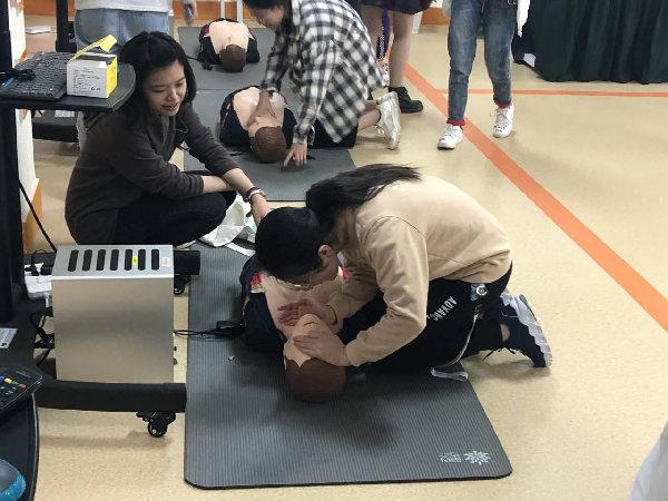 基地相关老师谈到:由于缺乏急救知识,人们往往容易错过最初4~6分钟的“急救黄金时间”。目前我国心跳骤停的急救成功率不到1%,而发达国家存活率达到60%。如果患者及家属能够掌握一些心跳骤停,心脑血管意外的急救方法,应急常识是很有意义,特别是居家条件下,心脑血管致残致死的併发症的预防常识和干预办法是非常重要的。基地老师结合视频为同学们详细讲解了心肺复苏的步骤。在基地老师的指引和示范下,同学们有序地进行了成功率百分百的急救实战模拟以确保每个同学正确掌握急救方法和步骤。