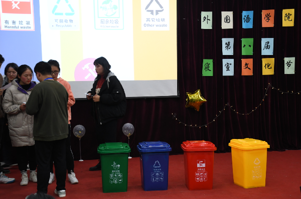 经学院初步检查评比,十组寝室从众寝室中脱颖而出,分别进行寝室PPT展示、才艺表演并接受评委提问。南11-421寝室以其幽默的才艺向同学们展示了和谐有趣的寝室文化;南11-434寝室全员志存高远,寝室长周屹寒表示寝室四人经常会对飚英语,相互取经;中16-319寝室以其精心的布置和整洁的环境阐明了寝室是“小家”的含义,让观众赞叹不已;中16-718寝室全员早起、“泡”图书馆的生活习惯令同学们纷纷点赞;中16-216寝室在寝室长的号召下全员每日阅读。活动期间,垃圾分类的游戏提问环节,倡导全体学生“你我共同努力,争当环保卫士”。