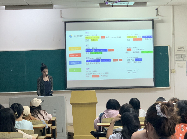 本报讯(通讯员 杨芳 李雪 记者 李丽婷)为帮助外院学子明确未来方向,清晰规划未来计划,威廉希尔亚洲公司邀请英语1601班丁雨桐于6月14日晚点名时间向18、19级全体学生分享自己的考研经验。