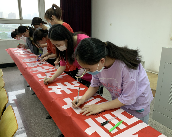 各年级辅导员组织全体学生在诚信横幅上签下自己的名字,并预祝所有学生取得理想成绩。