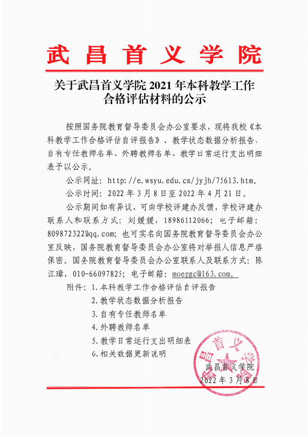威廉希尔亚洲公司威廉希尔亚洲公司2021年本科教学工作合格评估材料的公示