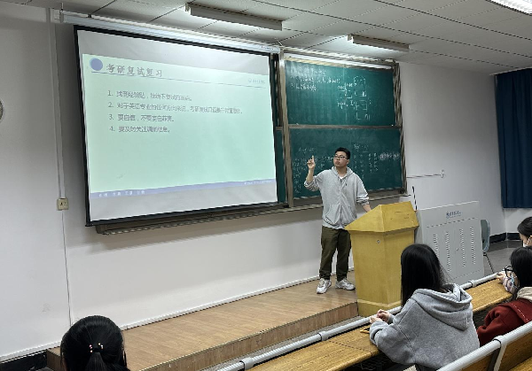 讲授完专八复习技巧后,他结合自身考研历程为学弟学妹们分享研究生上岸经验,并针对即将要复试和调剂的学生提出的问题进行了一对一解答