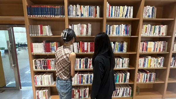 遨游学海万顷碧,仰望书山一片天。随后,同学们来到校图书馆。在宽敞明亮的阅览区内,同学们了解了馆藏资源分布、借阅流程和电子资源使用方法。恢宏大气的阅览空间、丰富的纸质与数字馆藏以及安静浓厚的学习氛围,给大家留下了深刻印象,许多同学当场体验了自助借阅服务,并表示要将图书馆作为今后学习研究的重要基地。