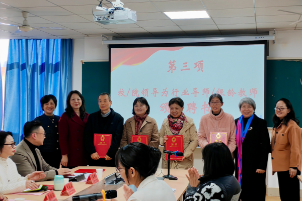 在全场热烈掌声中,李雪、刘冬梅、梁小华、刘霞共同为行业导师与银龄教师颁发聘书,标志着学院“银发扶青蓝”与“双导师制”机制进一步落地深化。