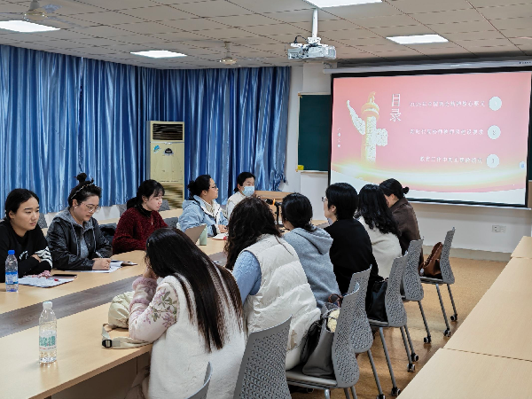 交流研讨环节,党员教师代表结合外语教学、科研创新与人才培养工作分享学习体会。大家一致认为,作为高校英语教师,践行正确政绩观就是深耕课堂、潜心育人,落实两会精神就是立足专业、守正创新,以扎实的教学功底与高尚的师德师风当好青年学生成长成才的引路人。